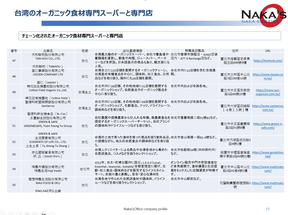 台湾のオーガニック食材専門スーパーと専門店のレポート